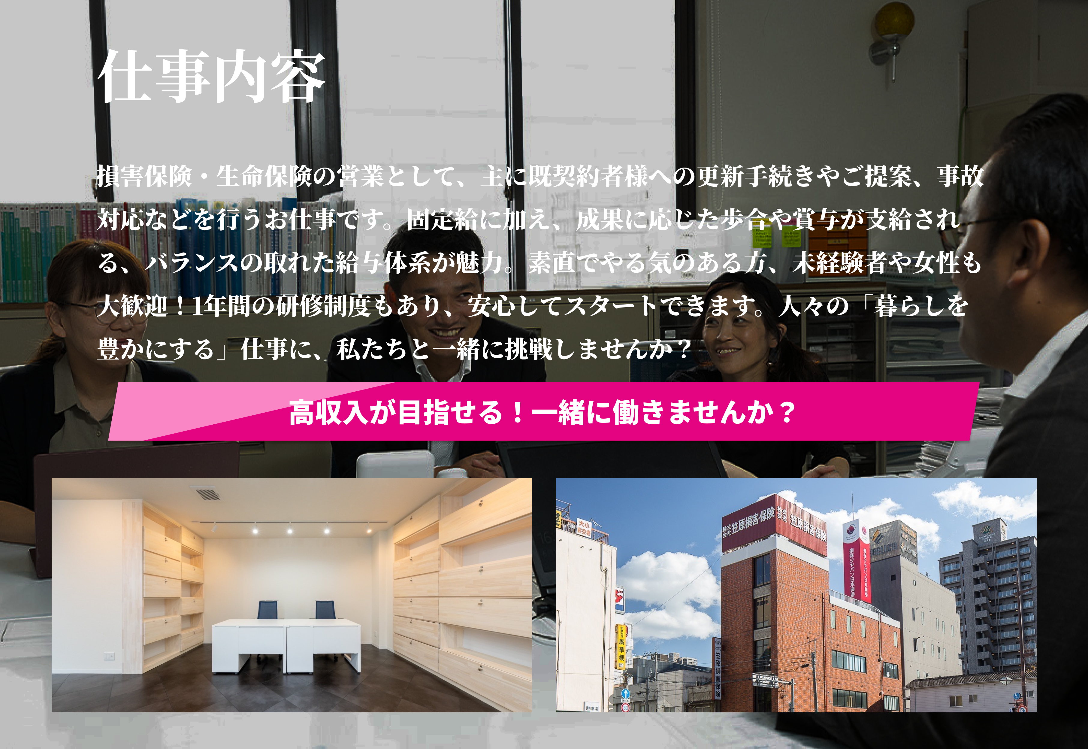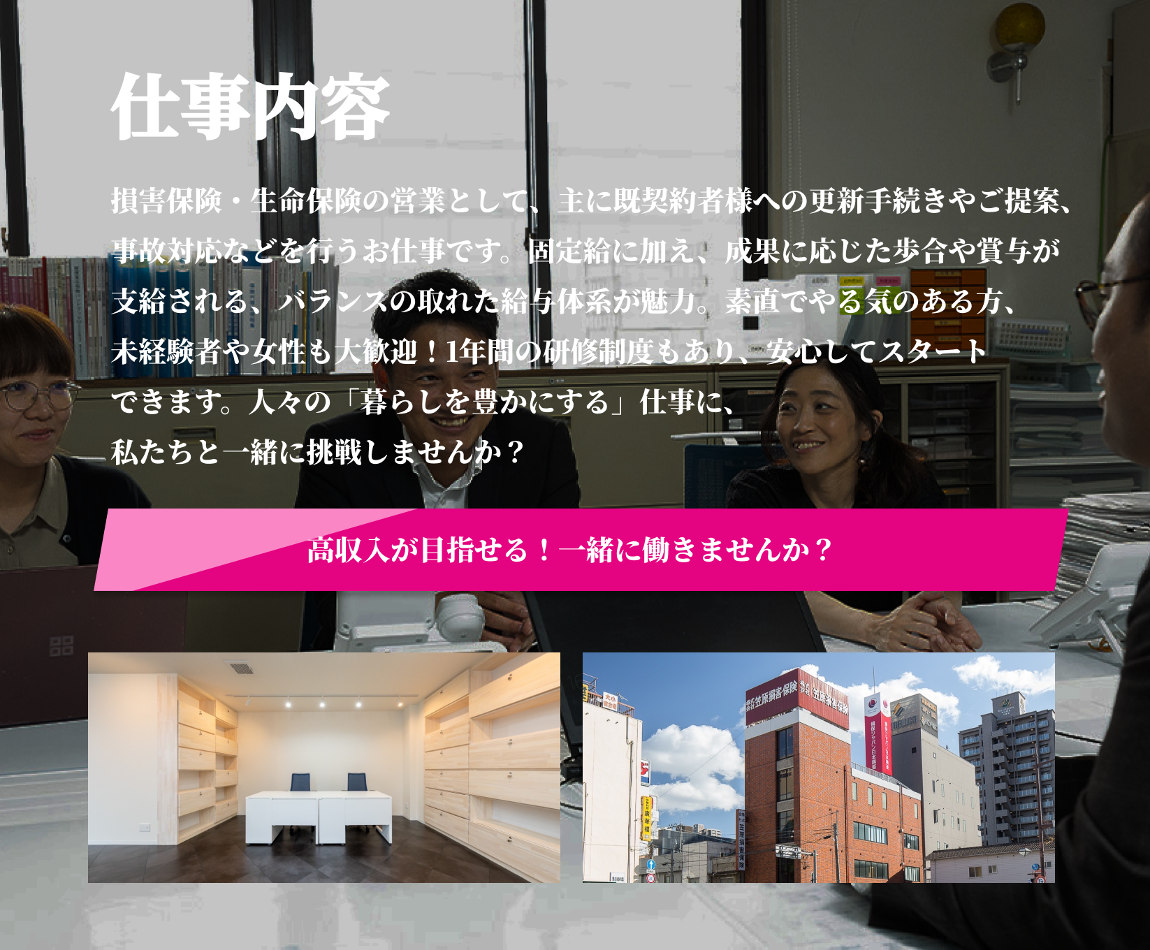 保険セールススタッフ 損害保険・生命保険の営業活動を行います |